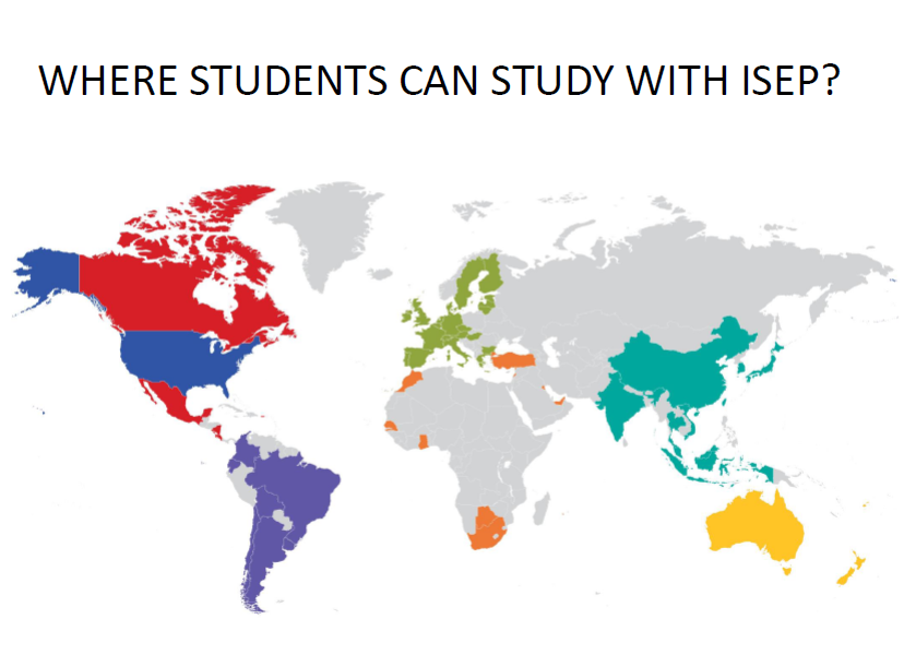 La red ISEP es una organización de intercambio para estudiantes de todo el mundo que puede ser de una duración de un semestre o un año. Esta red cuenta con más de 350 programas académicos, en más de 150 universidades, en cerca de 50 países y desde 1979 ha enviado a más 56.000 estudiantes al extranjero. Tiene convenio con instituciones educacionales en los siguientes países: